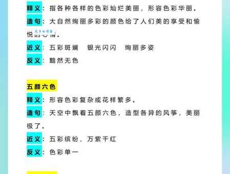 说“鲜艳”,大家反应大概就是颜色很亮,很漂亮,对吧?就像春天里的一片花海,五彩缤纷,让人心情都跟着明朗起来。可要我说这“鲜艳”的近义词,那可就多了去了,就像超市货架上琳琅满目的糖果,让人眼花缭乱。