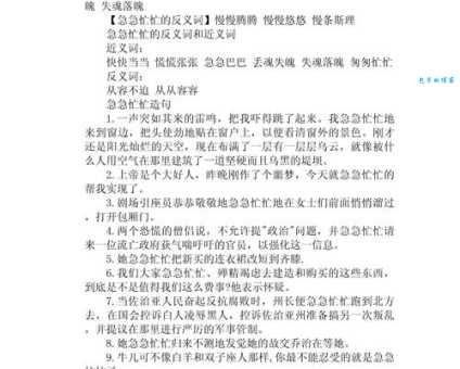 哎,各位看官,今天咱们来聊聊“急忙”这个词儿。这词儿,看着简单,用起来可就各有千秋了。说白了,就是事儿来得急,人得赶紧行动的意思嘛。这不,近小编我正琢磨着写篇文章,标题就叫《急忙的近义词是什么》,结果一琢磨,这词儿还真不少呢!